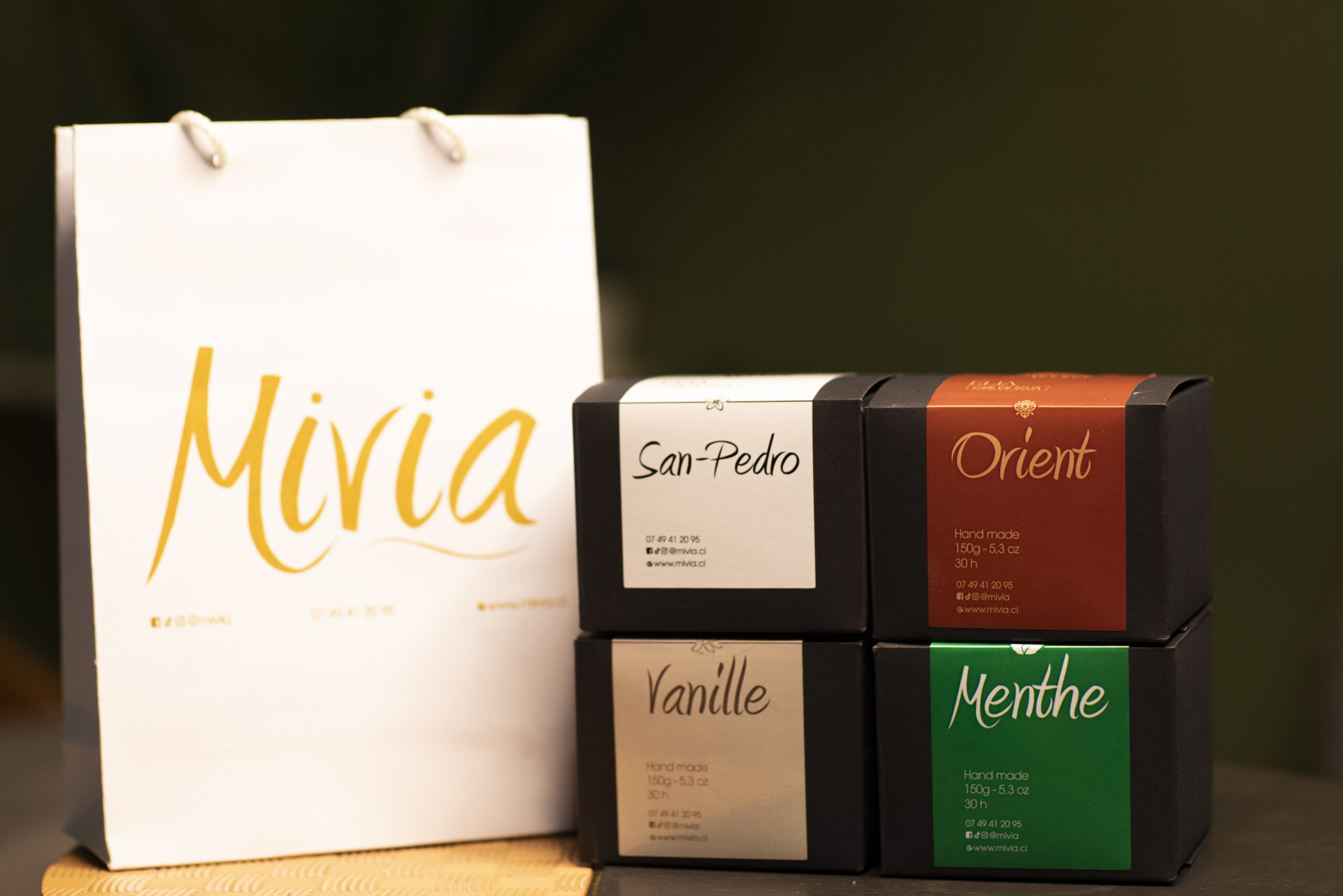 Depuis sa création, la Maison s’est donnée une mission : réconcilier le luxe et l’éthique. C’est à travers une fabrication artisanale ivoirienne que nous concevons des bougies parfumées et parfums d’ambiance le plus naturels possible.